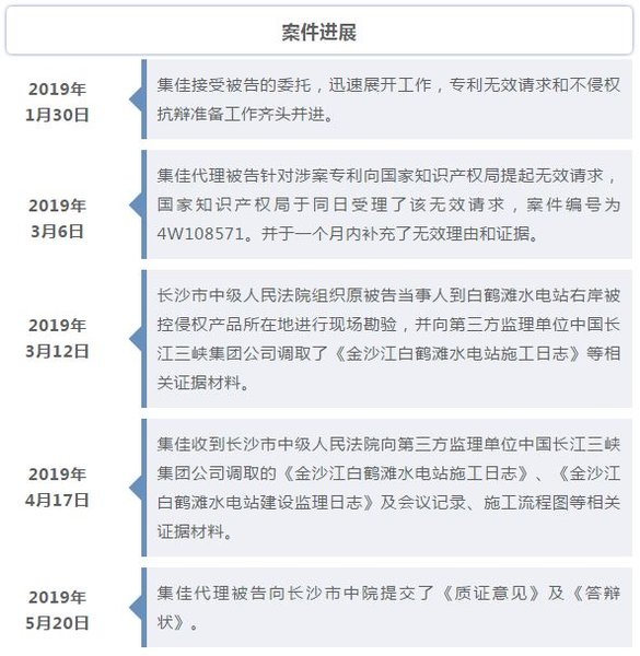 至此,集佳代理被告公司在白鹤滩水电站闸门门槽施工方法及装置发明专利侵权及无效案中取得全面胜利!