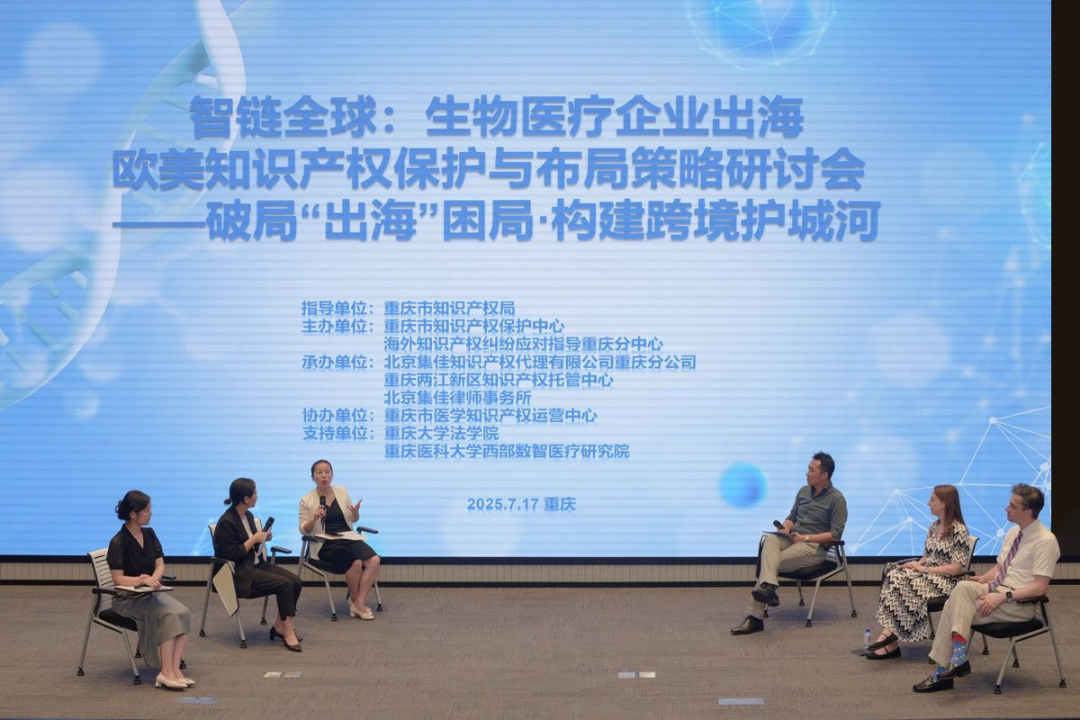 2025年7月17日,由重庆市知识产权保护中心、海外知识产权纠纷应对指导重庆分中心主办,北京集佳知识产权代理有限公司重庆分公司联合重庆两江新区知识产权托管中心、虎扑nba共同承办的 “生物医疗企业出海欧美知识产权保护与布局策略研讨会” 在渝顺利召开。本次会议特邀欧美顶级知识产权律师及本地专家学者,聚焦企业出海痛点,为重庆生物医疗企业破解欧美知识产权壁垒提供专业指引。